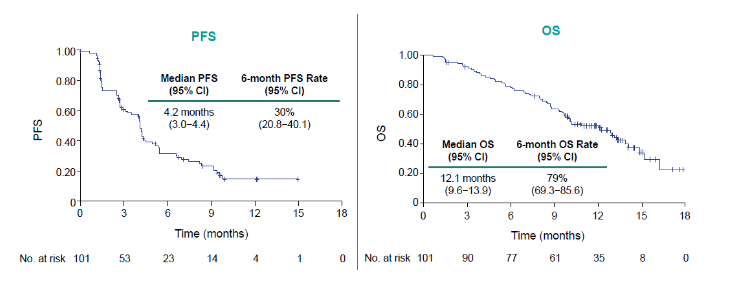 Tisotumab Vedotin治疗的中位PFS为4.2个月,中位OS为12.1个月,对比标准疗法的历史数据,中位OS一般为6.4-9.0个月,Tisotumab Vedotin具有显著优势。