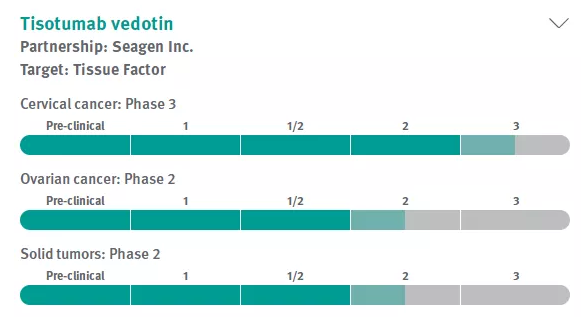 Genmab的Tisotumab Vedotin为首个TF靶向药物,采用Seagen的ADC技术。2020年已经递交上市申请并在前不久取得FDA优先审评资格。
